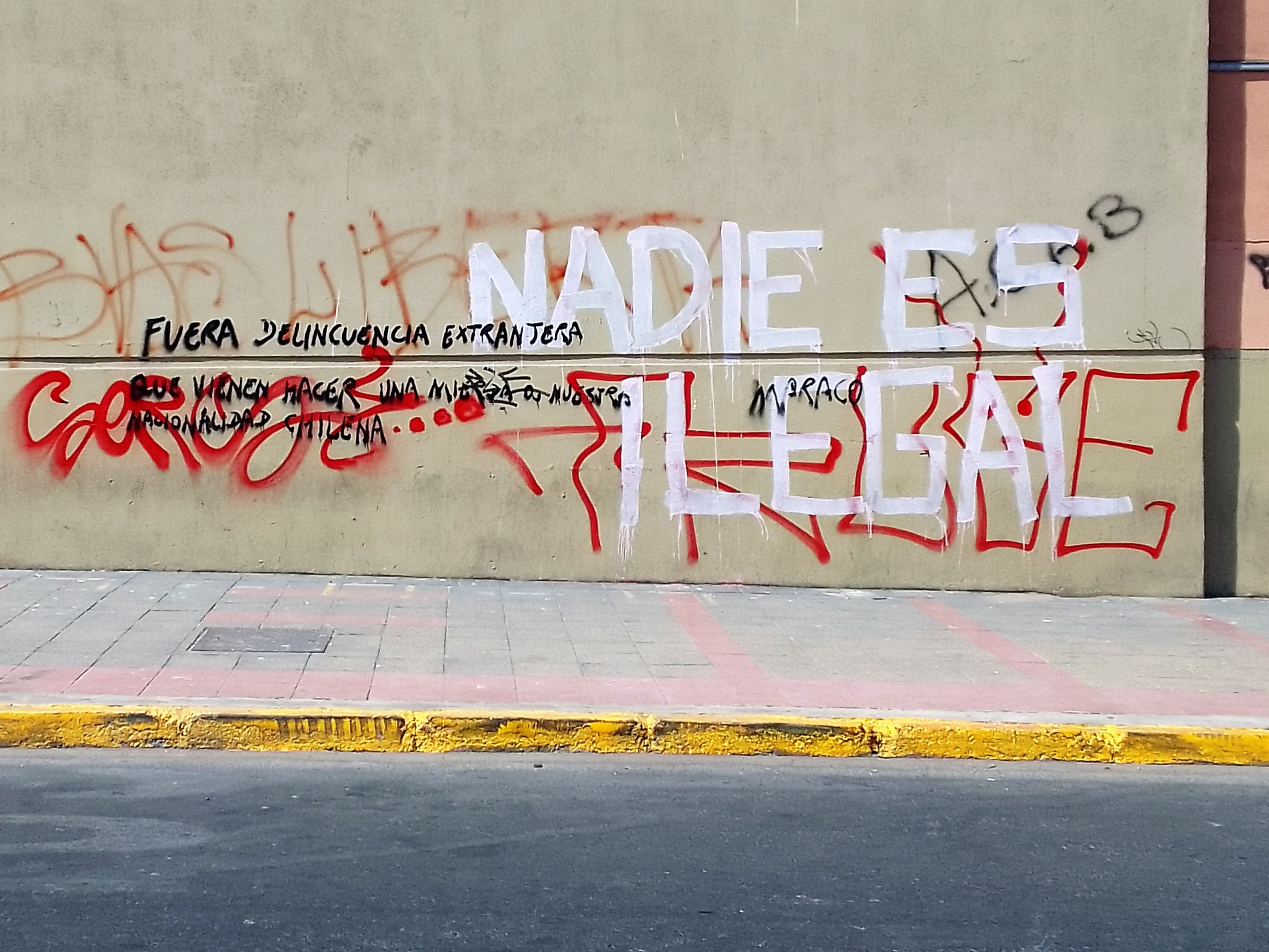 Las fotografías las realice durante mi estancia en el norte de Chile desde noviembre de 2021 hasta marzo de 2023, como parte de mis inquietudes en la intersección entre los estudios de migraciones y de fronteras, al buscar comprender los complejos de seguridad fronterizos, los controles y las experiencias migrantes. Durante mi trabajo de campo realice registros (visuales y sonoros) de diversas vivencias relacionadas con el tránsito, las fronteras, las violencias y los controles. Estas imágenes no solo me permiten recordar ciertos paisajes urbanos y fronterizos, para describir detalladamente varios fenómenos sociales, sino también ampliar mi perspectiva sobre lo que se ha denominado como “crisis migratoria”. Las paredes actúan como espacios donde se tensionan y exponen visiones antagónicas, por ejemplo, entre la solidaridad y la criminalización de las migraciones, o posibles conexiones o acuerdos, como pueden ser las distintas luchas sociales (fronterizas, migrantes, feministas). Las paredes se convierten en escenarios de debates y reflexiones, donde se manifiestan opiniones divergentes o acuerdos entre quienes quieren manifestar sus pareceres sobre ciertas coyunturas sociales y políticas. Personas escriben mensajes, otras responden, algunas tachan lo dicho y expresan su punto de vista. Las paredes se convierten en testigos de nuestras preocupaciones y reflejan los temas debatidos tanto en los medios de comunicación, la política y, también, en las calles.