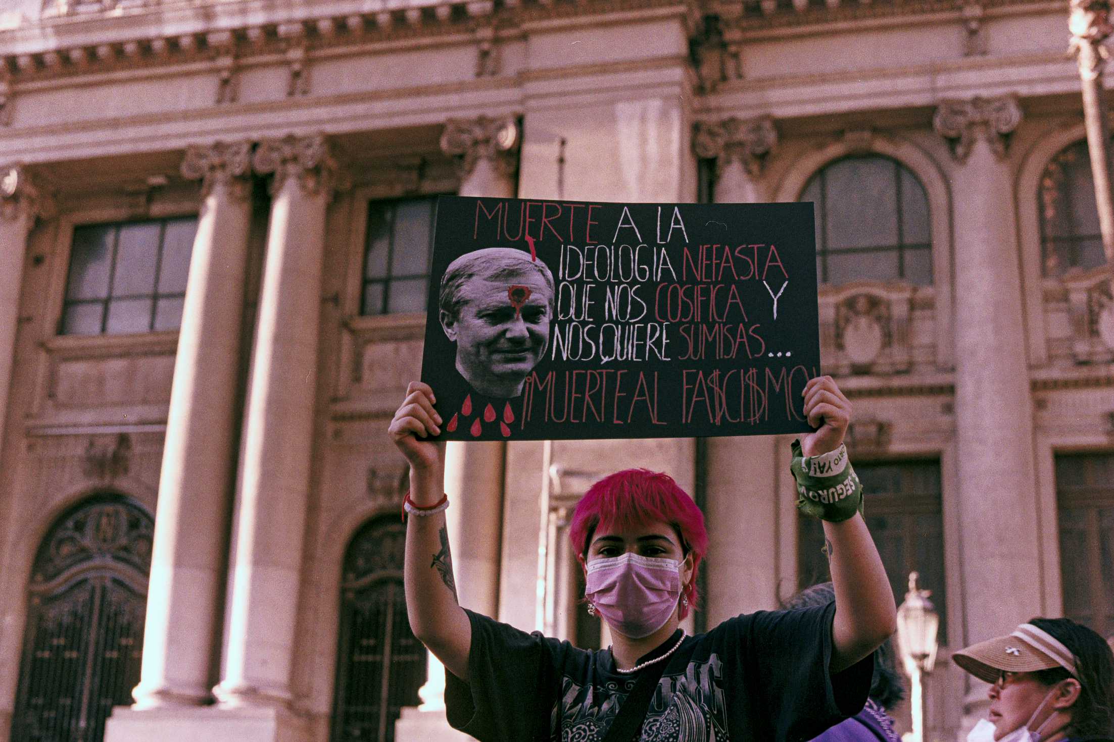 The presented images are part of a personal project of analog photographs, aiming to document the diverse expressions of artivism in the marches of Santiago, Chile, since October 2019. Through analog photography, I have been able to capture the various forms of protest, depicting the materialities, body’s and mobilities converging in the streets. The significance of these photographs lies in documenting the collective inhabitation of public space, linked to the memory of the struggle against fascisms and the fragility of democracies and our rights.