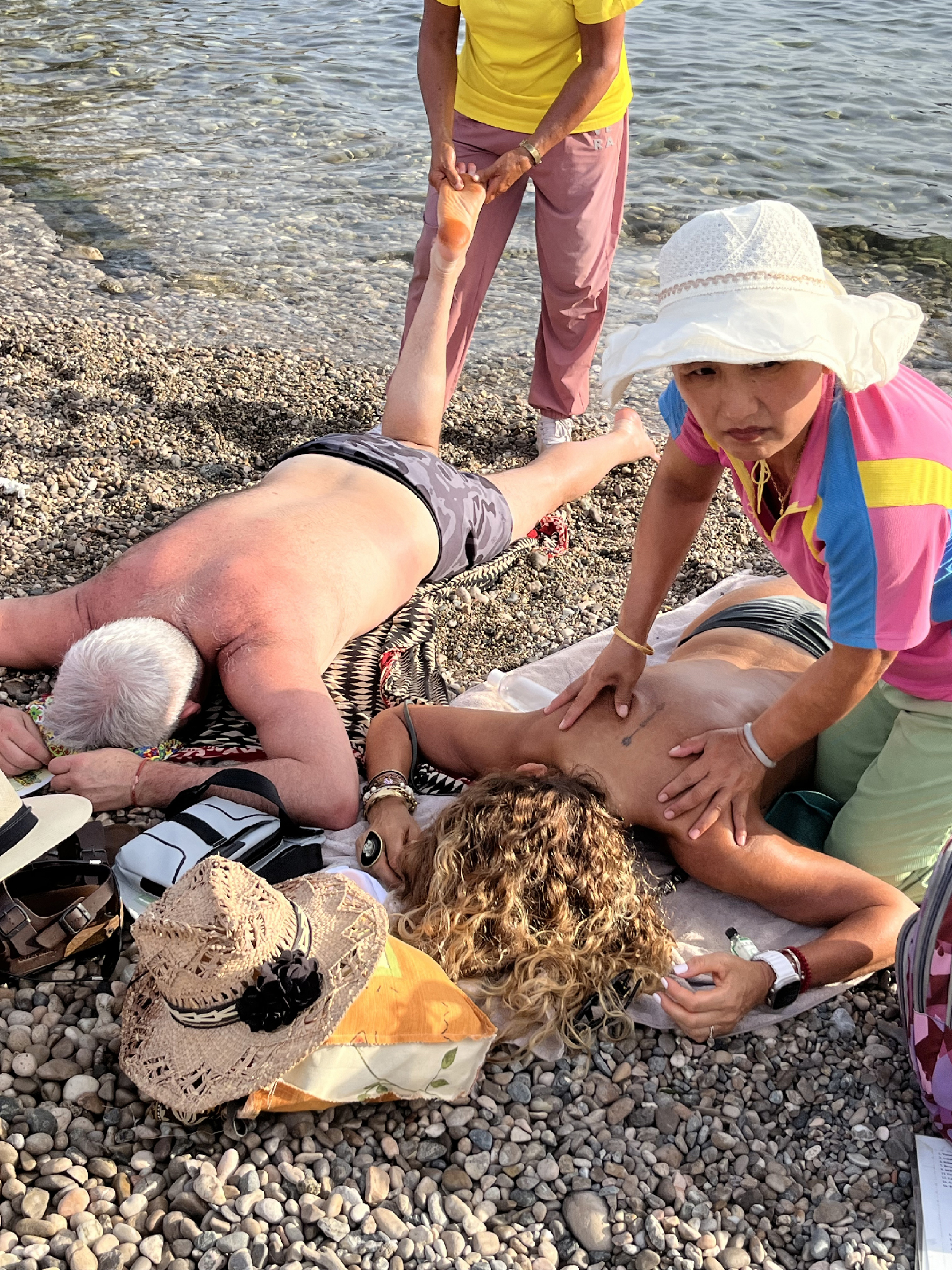 Nombre de las fotos: Foto 1: Masajes en la playa de Taormina. Foto 2: Bañada por el sol y las palmeras de Puerto Escondido. Foto 3: Milho, maíz, choclo. Comida playera. Foto 4: Desconexión en la silla de playa. Foto 5: Familia Italiana.