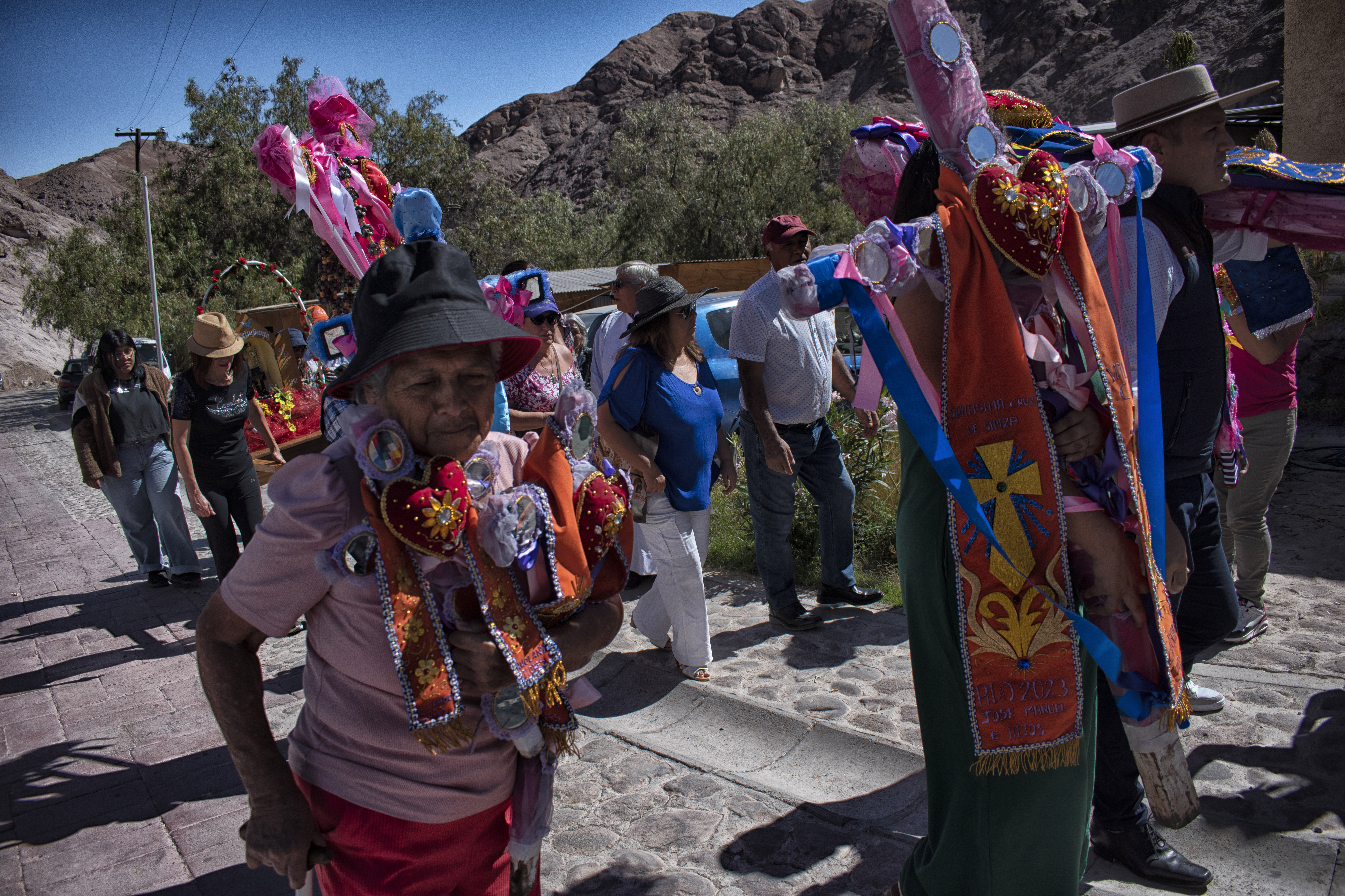 The photographs were taken in the Codpa Valley, in the far north of Chile, during the 2022-2024 Festival of the Crosses. In this arid territory, where the hills stand guard and adobe houses are still the most common architecture, the community gathers in the town from different parts of the country each year to celebrate, give thanks, and renew their connection to the land.