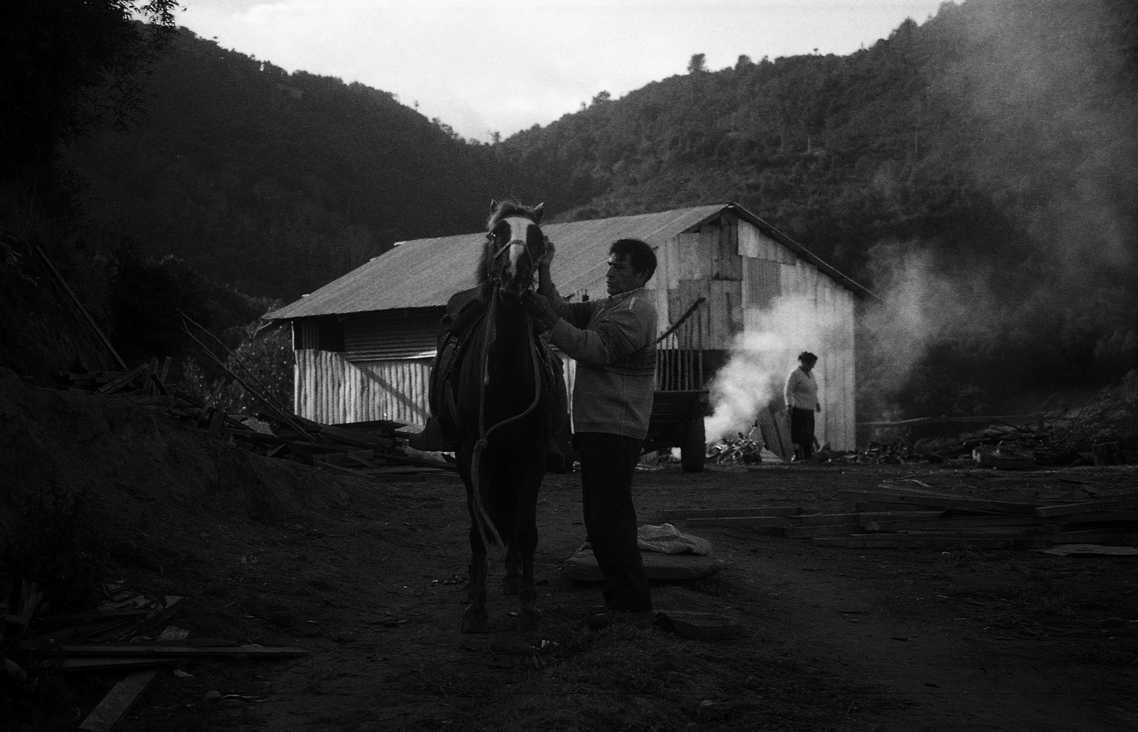 Name of the photos: 1.- Familia Lienlaf Ancacura. 2.-Territorio Lof Mapu Alepue. 3.- cocimiento fibras para su posterior limpieza. 4.- Llegada después de la recolección. 5.- Trayecto recolección. 6.- Trayecto recolección. 7.- Trayecto recolección. 8.- tejido pilpil. 9.- Limpieza de la fibra. 10.- Recolección de la fibra. 11.- Vista desde el hogar familiar. 12.- Vida cotidiana. 13.- Secado fibra. Paulino y Rosario.
