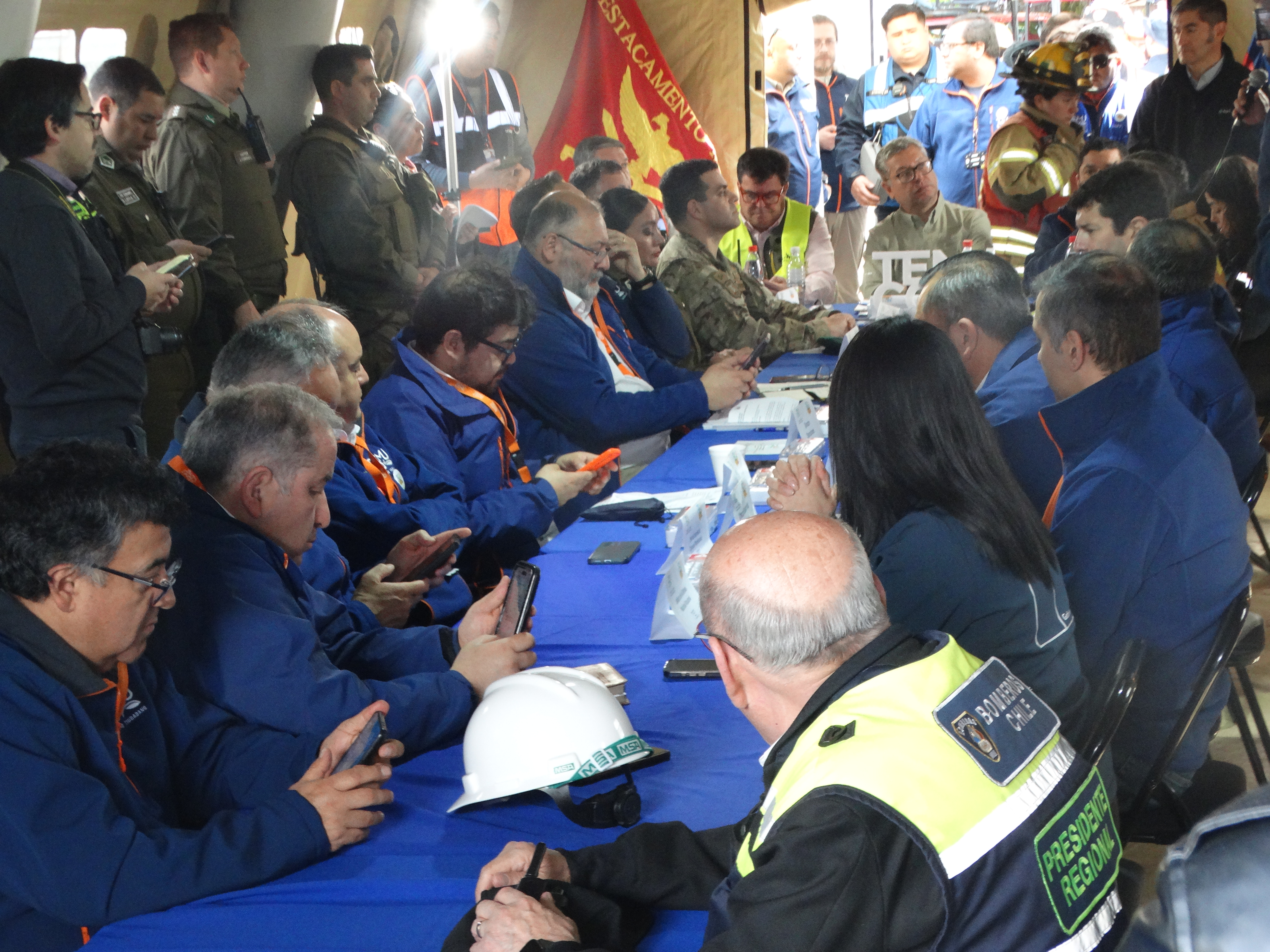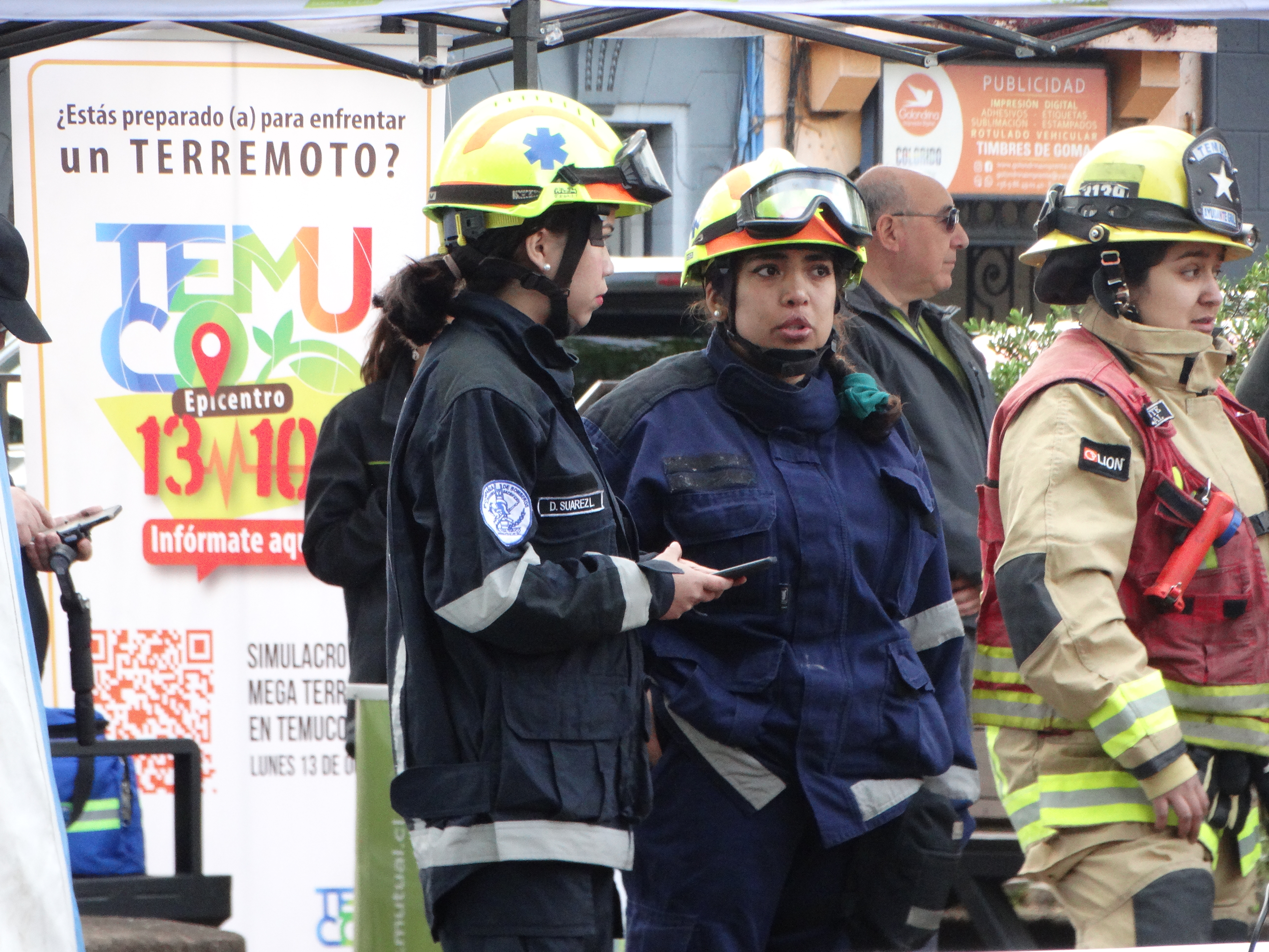 As part of the second earthquake simulacrum organized by the Municipality of Temuco, various institutions, agencies, and public administration units met in case of a possible magnitude 7 earthquake on the Richter scale.