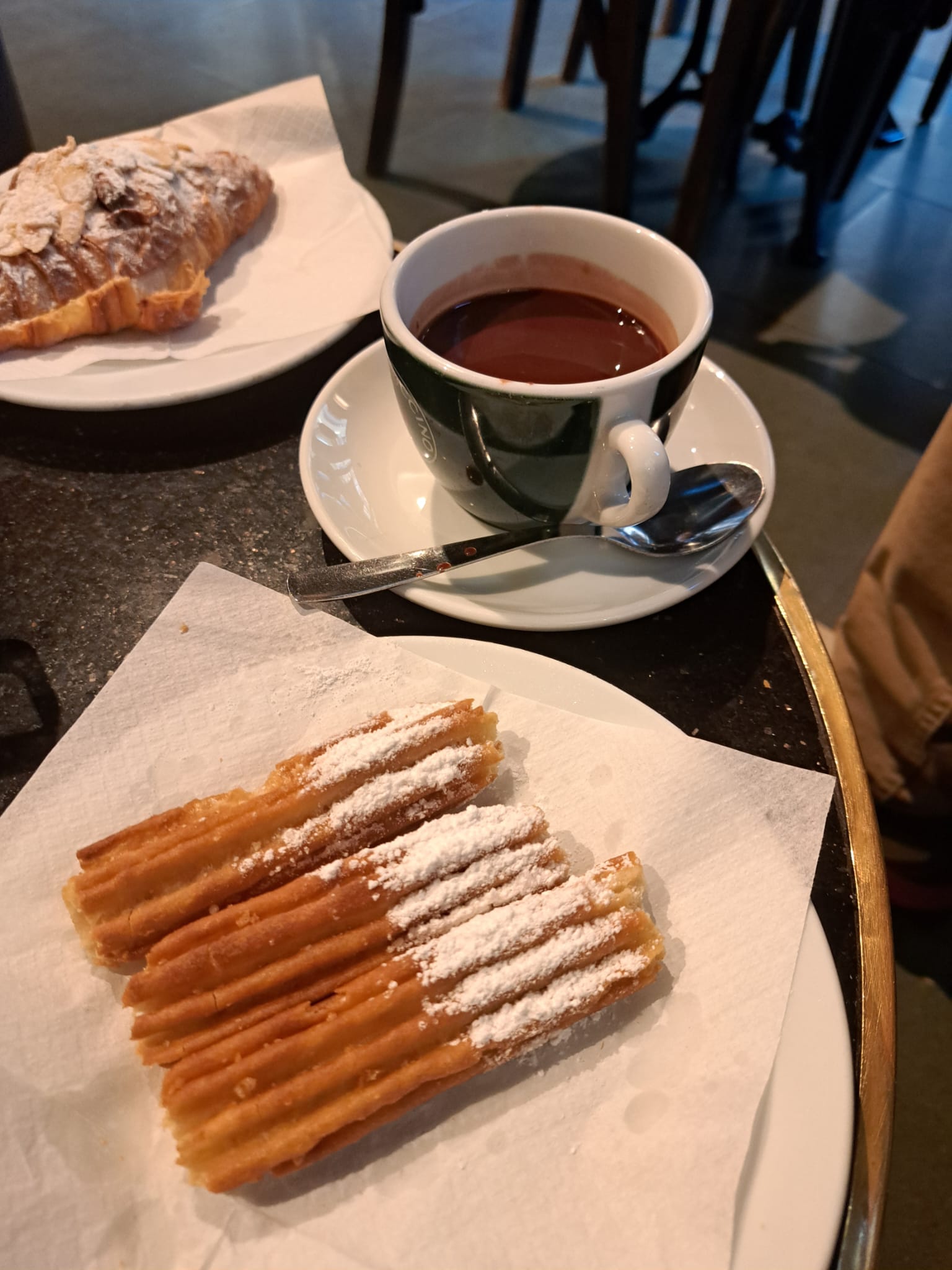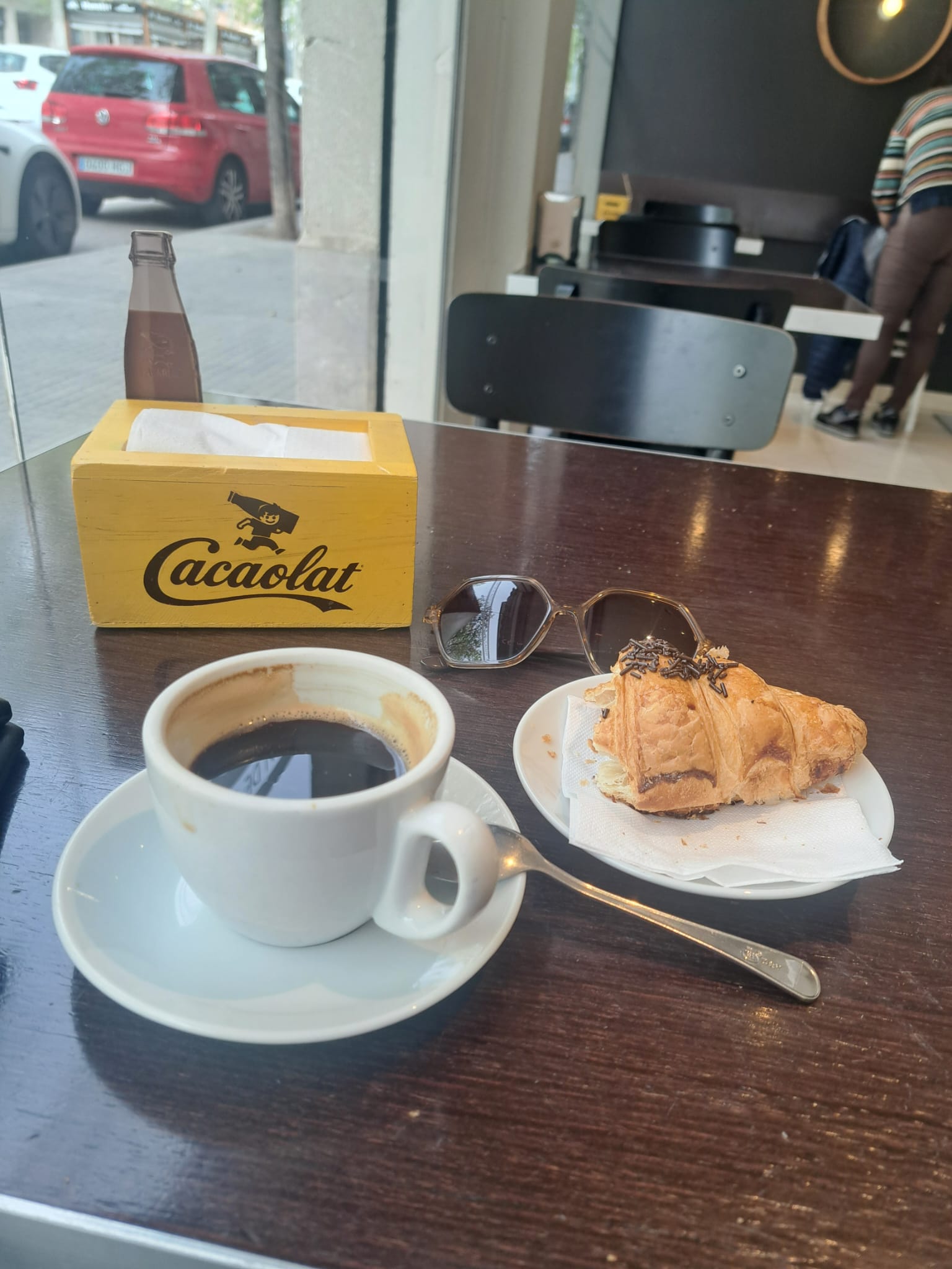 The images reveal the significance of food in Barcelona’s cafes and bars, which have become spaces for leisure and connection for locals and foreigners alike. It’s easy to find in these places: baguettes with ham and cheese, croissants with their various fillings, coffee, Cacaolat (local hot chocolate), and in winter, hot chocolate with churros that warm the soul with their sweetness, or the well-known Argentine alfajores, trying to maintain their identity far from their geographical origin. These places also persist in a kind of limbo, somewhere between a place and a haven, because of the meaning they hold. For many, they are a place to stop and satisfy a quick craving; for others, they are meeting points for retired people to chat, or for those who bring their laptops to work and study; and for still others, for those who unwind over a few beers with friends after university or work.